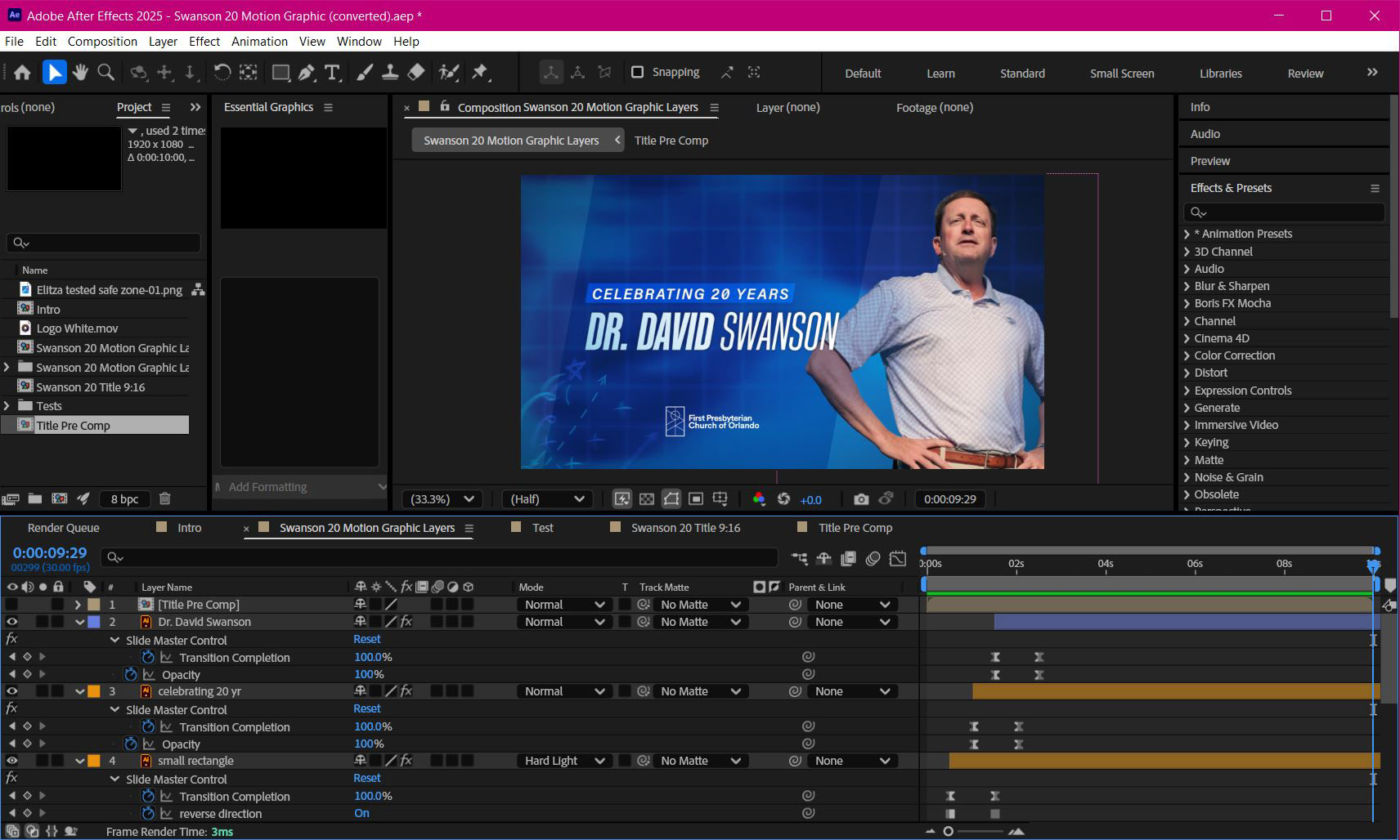 I was tasked to come up with a visual identity to celebrate the 20th Anniversary of Dr. David Swanson as senior pastor of First Presbyterian Church of Orlando (FPCO). Knowing that David is a big sports fan, I decided to take inspiration from football and basketball posters and graphics that I saw online. I chose a blue color scheme because blue is David's favorite color, and I snuck a small star icon into the design as tribute to his favorite sports team — The Dallas Cowboys! He felt like the true MVP of FPCO!
